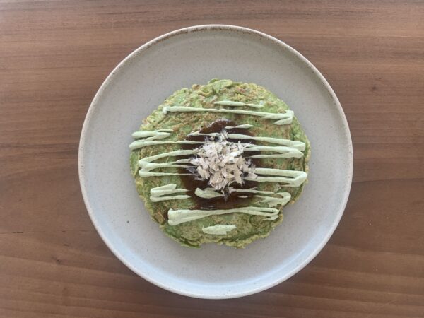 ケールパウダーで栄養UP!冷蔵庫野菜のお好み焼き