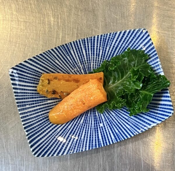 【ポイント】 ・皮付きのまま調理することで、にんじん本来の栄養と風味を逃しません。 ・電子レンジで加熱することで、火の通りが良くなり、甘みも増します。 ・すだちの爽やかな香りと酸味が、にんじんの甘みを引き立てます。 ・徳島県産のすだちを使うと、より一層、徳島の味を楽しめます。